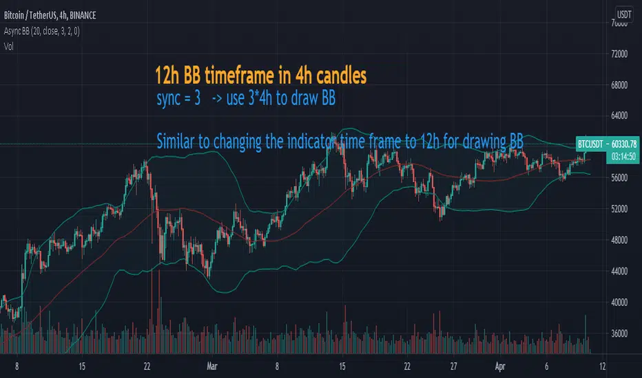 For example: If your chart is 4 h and you set the sync value to 3, the Bollinger Bands will be drawn with a 12H time frame. 3 * 4H = 12