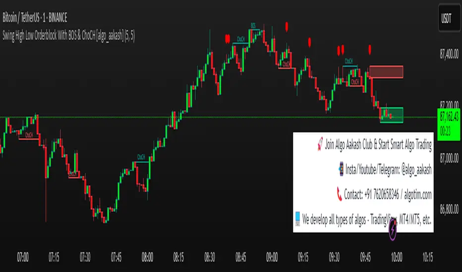 Swing High Low Orderblock With BOS & ChoCH [algo_aakash]