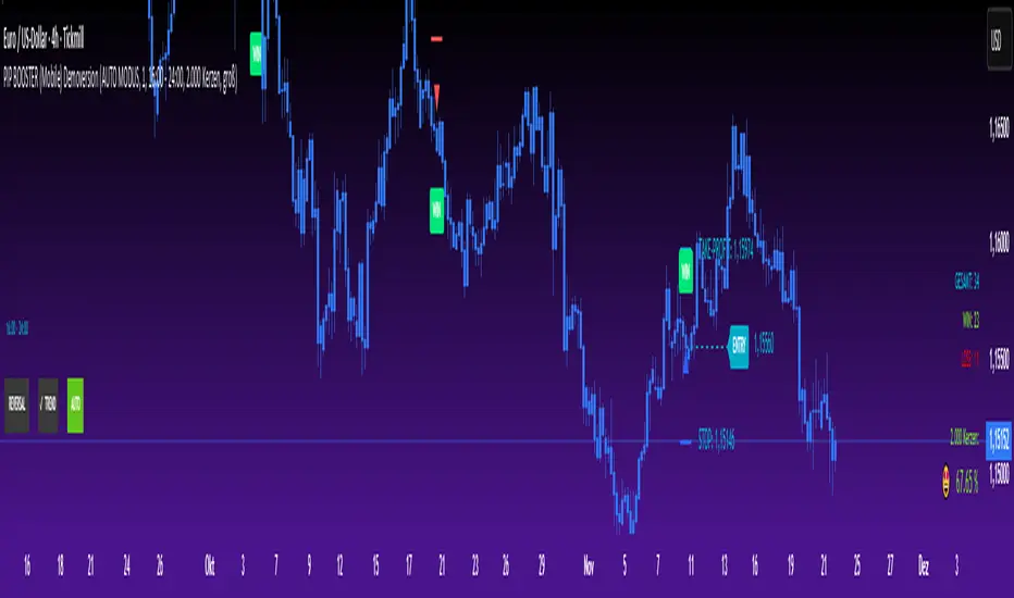The PIP BOOSTER from underground-traders.com is a very intelligent indicator with integrated win-rate tracking (%), which can be used on all markets and timeframes. Thanks to its two fundamentally different algorithms, the PIP BOOSTER is able to find a profitable setup in over 80% of all charts. The win-rate tracking (%) is highly detailed and can be applied to up to 5,000 candles.
