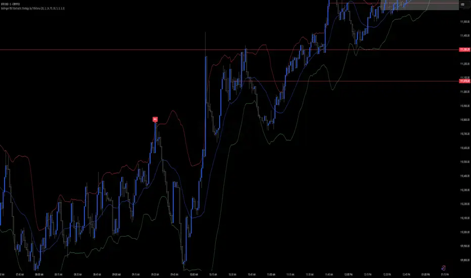 This indicator combines Bollinger Bands, RSI, and Stochastic to provide an educational view of potential market conditions. It highlights areas where price, momentum, and volatility align, helping traders observe overbought and oversold conditions with optional re-entry tracking.