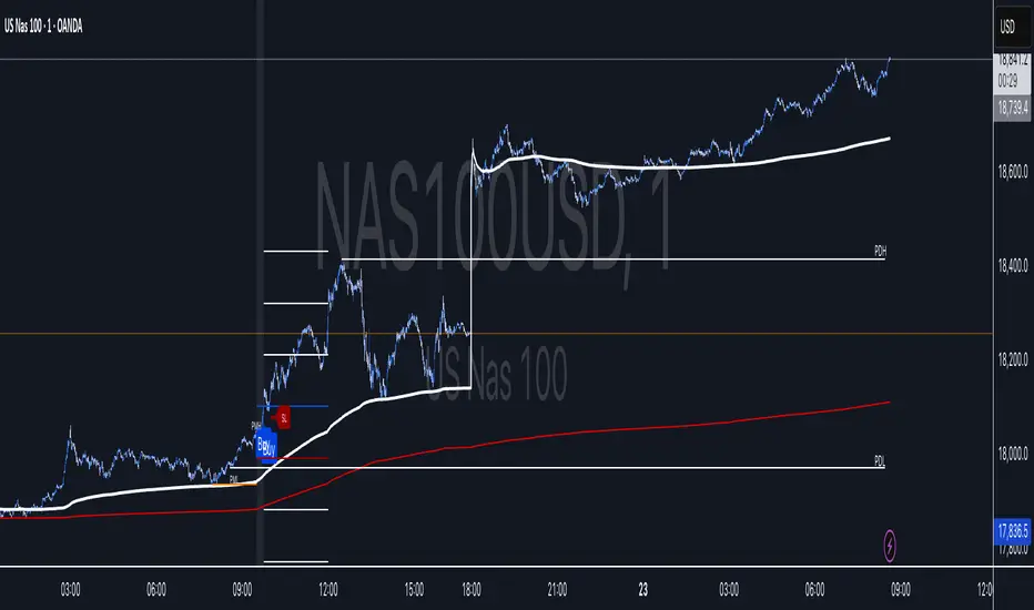 Opening Range High/Low: Drawn from a user-defined time window and locked for the day