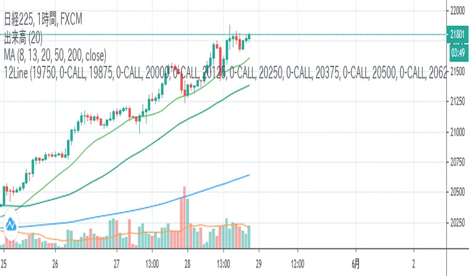 日経平均先物取引時に水平ラインを表示し、素早いライン描画を助けます。