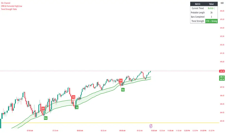 The real edge comes from contextual trade management. By converting elapsed trend time into a percentage of the probable trend length, the table classifies the move into Strong, Medium, Declining, or Exhaustion phases. Early stages (Strong/Medium) favor continuation trades and holding winners, while later stages (Declining/Exhaustion) warn against chasing momentum and instead encourage scaling out, tightening stops, or looking for reversal and mean-reversion setups. In practice, this strategy acts as a risk-timing overlay—helping traders decide when to press, when to be patient, and when to stand down—rather than telling them what direction to trade.
