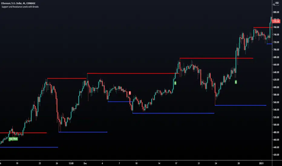 Updated Support and Resistance Levels with Breaks [LuxAlgo]