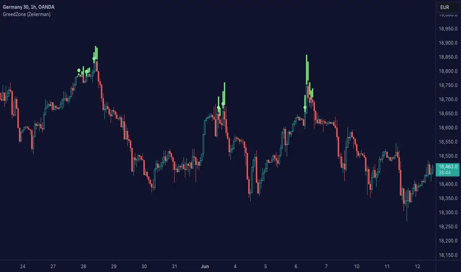 "Be fearful when others are greedy, and greedy when others are fearful" - Warren Buffett. Greedzone is a contrarian indicator that gives us an indication when greed begins to take over in the market. Traders should be prepared for increased volatility and good trading opportunities.