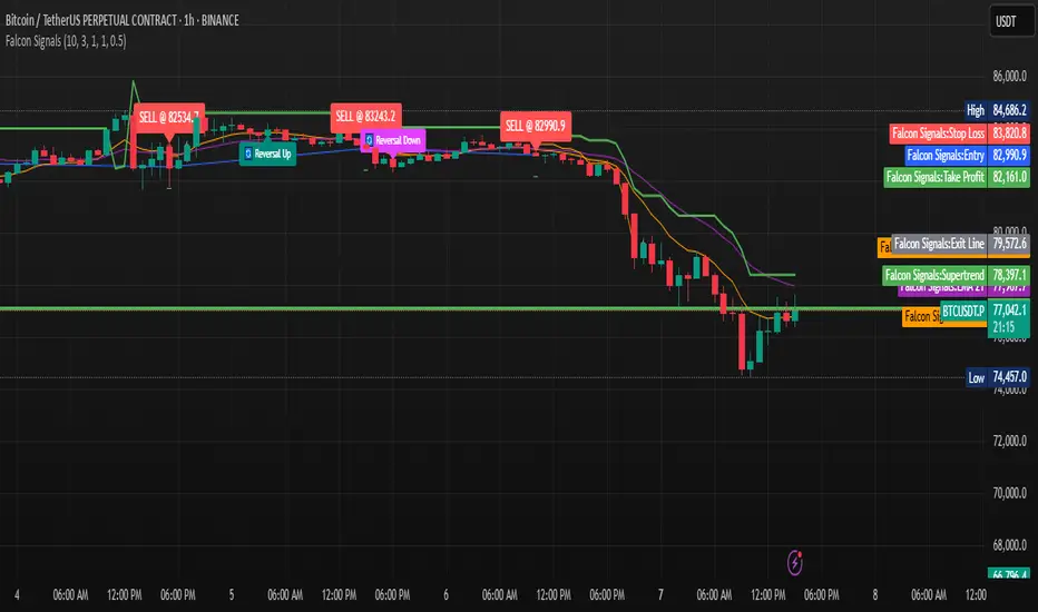 This script is a TradingView Pine Script for a trading strategy called "Falcon Signals." It combines multiple technical indicators and strategies to generate buy and sell signals. Here’s a breakdown of what the script does: