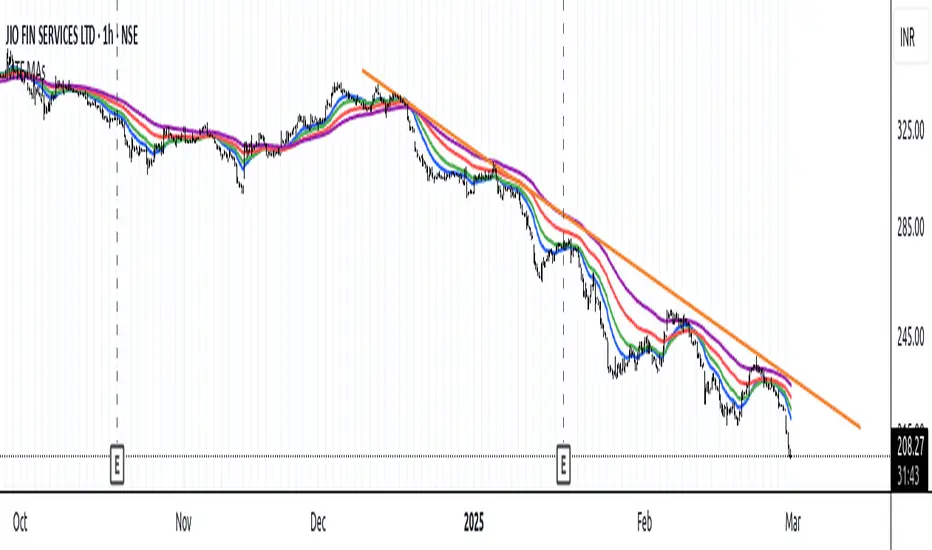 Color-Coded for Clarity: The script uses distinct colors for each EMA on the chart: