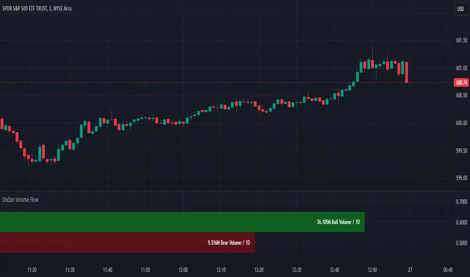 I am excited to introduce an updated version of the Dixson Volume Flow indicator, now upgraded to Pine Script version 6, offering improved performance and functionality. This update features a new scaling factor, which allows for better visualization of volume dynamics across different zoom levels, alongside newly integrated alerts.