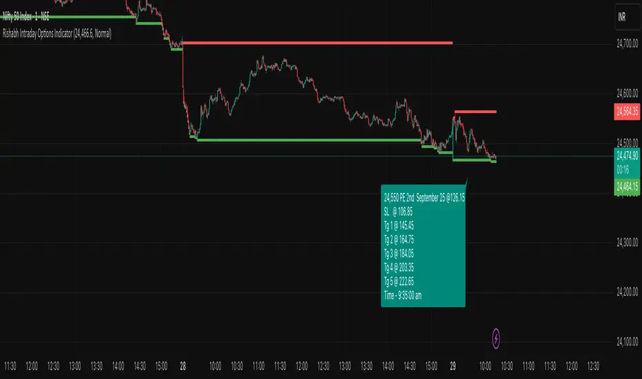 This indicator is designed to provide a structured and disciplined approach to intraday options trading, with clear targets and defined risk management.