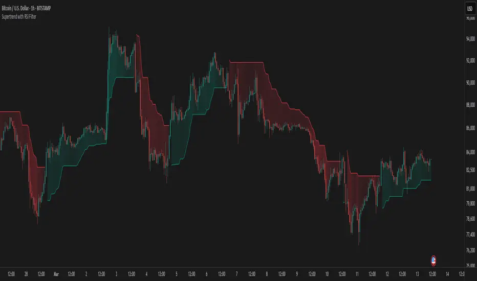 Updated description for better clarity and compliance with TradingView publishing rules.Supertrend with RSI Filter