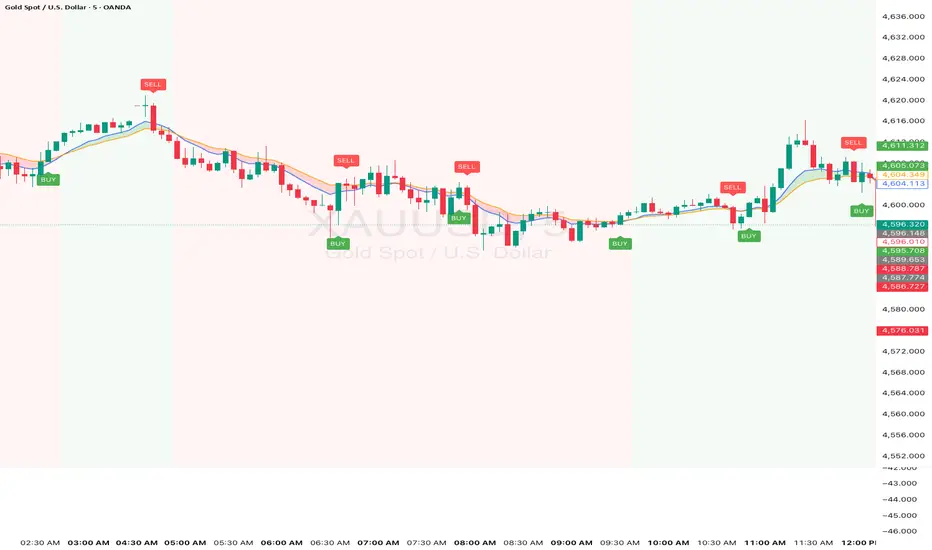 Confirmed Buy/Sell signals when price actually crosses EMA15 → labeled "BUY" and "SELL"