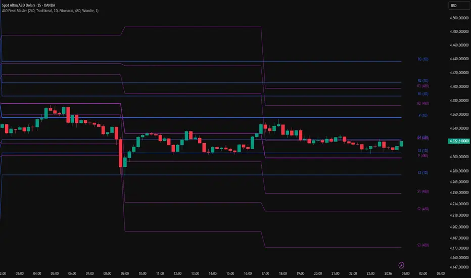 AIO Pivot Master is a comprehensive, all-in-one solution for traders who rely on Pivot Points for support and resistance analysis. This indicator solves the common problem of needing multiple indicators to view different pivot types or timeframes simultaneously. It allows you to plot up to three independent pivot sets on a single chart, each with its own fully customizable timeframe and calculation method.