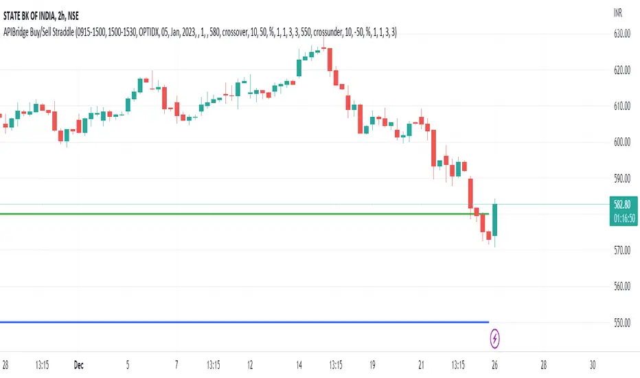 Using this strategy you can buy straddle ,sell straddle or do both simultaneously . The user is needed to specify the trigger price and when the candle crosses the trigger price it will trigger the orders of call and put according to the inputs you have choosen. The user is also needed to specify the stoploss and target for both the legs seperately .