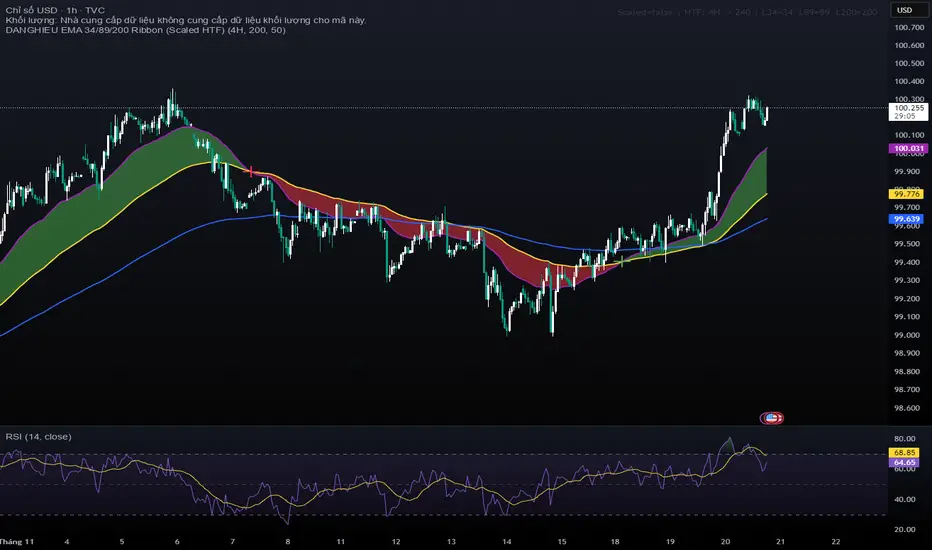 📘 Indicator Description – EMA 34/89/200 Ribbon (Scaled HTF)
