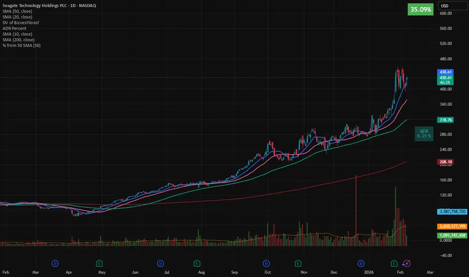 This calculates how much in percentage terms the current price is above or below simple 50 MA