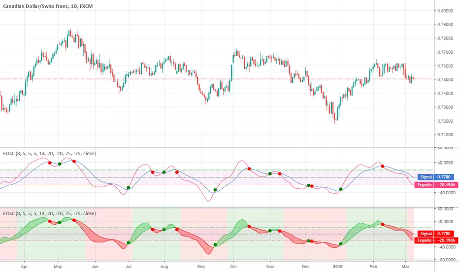 Ergodic Oscillator is based on True Strength Index (TSI) by William Blau.