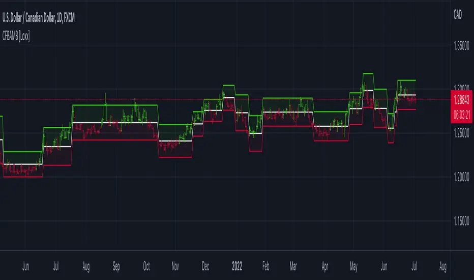 CFB examines price action for a particular fractal pattern, categorizes them by size, and then outputs a composite fractal size index. This index is smooth, timely and accurate