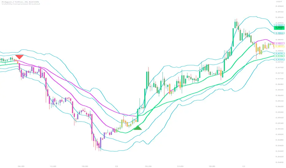 The Volatility Compression Breakout indicator is designed to identify periods of low volatility followed by potential breakout opportunities in the market. It aims to capture moments when the price consolidates within a narrow range, indicating a decrease in volatility, and anticipates a subsequent expansion in price movement. This indicator can be applied to any financial instrument and timeframe.