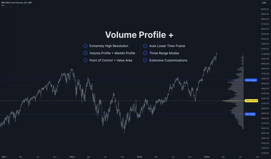 This indicator provides a high-resolution and high-precision implementation of Volume Profile with flexible range settings. Its key features include: