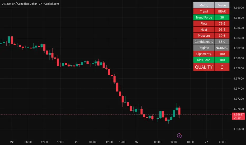 Best used on H1–D1 timeframes in Forex or indices for quick market assessment and decision support. Combine with structure, volume confirmation and risk management.