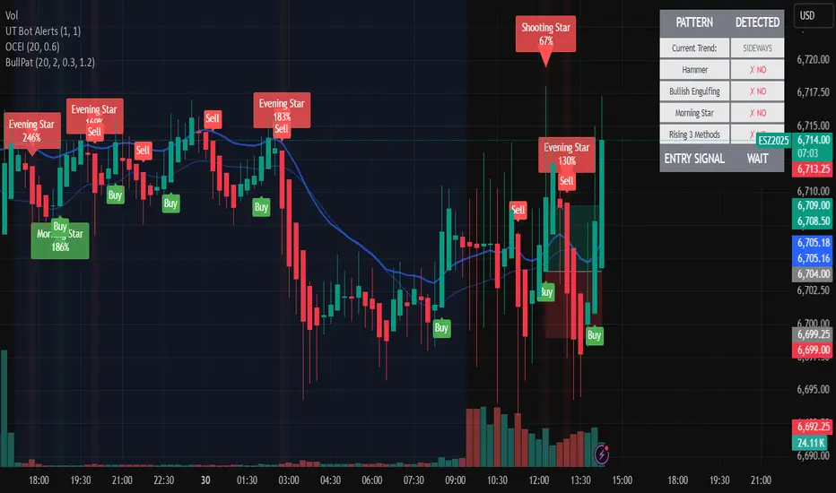 Pattern labels showing name and type (REVERSAL/CONTINUATION)