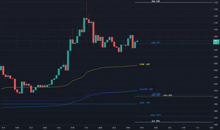 At user request I have coded a live 24 hour VWAP.This VWAP will constantly calculate the last 24 hours from the current time.