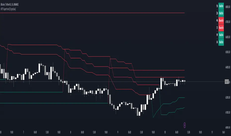 - Multi Timeframe Analysis: Tracks Supertrend signals over a variety of timeframes, offering a broad perspective on market direction.