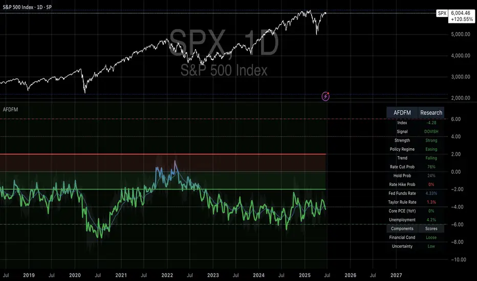 The AFDFM employs a six-component scoring system that aggregates fundamental indicators into a composite Fed decision index: