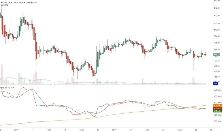 To use this indicator in your charts, click on "Share" button (top right on the chart). Click on "Make it mine" button on the dialog that pops up. Now, you will have a copy of this chart with the indicator's source code in it. Click on "{}" to open the source code of VQI_LB and save it to your custom scripts section.