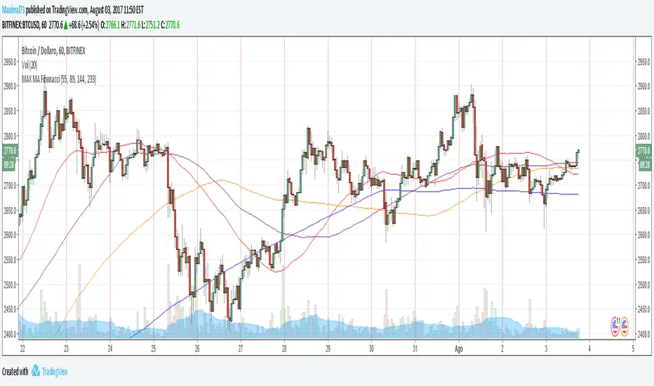 In un unico indicatore visualizza 4 medie mobili di default (55, 89, 144, 233) numeri di Fibonacci
