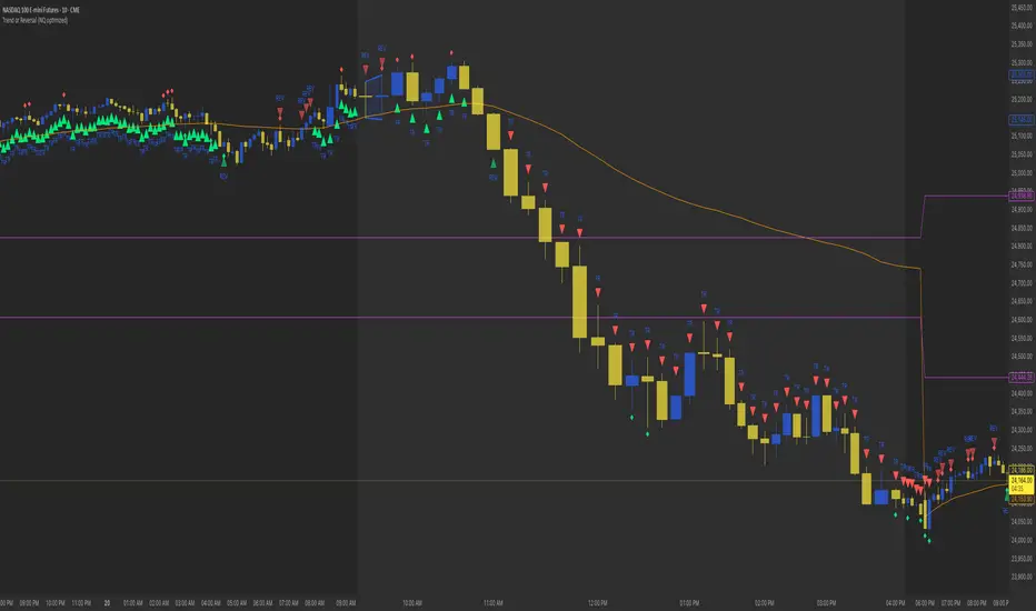This indicator is a session-aware trade map for NQ futures that combines VWAP, an adaptive Opening Range Box (ORB), prior-day/weekly value areas, and CVD-based divergences into a single confluence engine. It scores trend and reversal setups separately on every bar, then selects one best signal per bar (long or short) so you’re never flooded with conflicting entries.