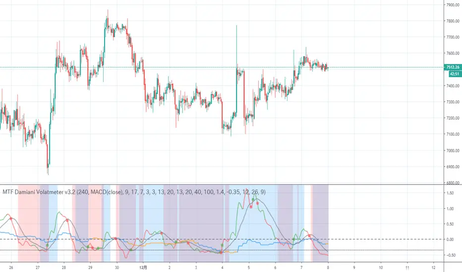 使い方は、Damiani Volatmeterが0を超えた時に、緑ならLONG、赤ならSHORTと想定しています
