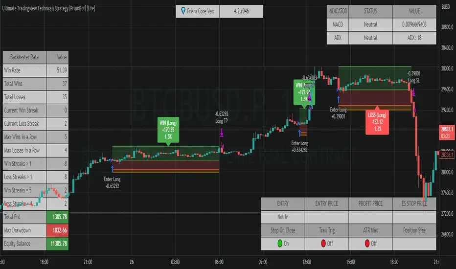 Updated Ultimate Tradingview Technicals Strategy [PrismBot] [Lite]