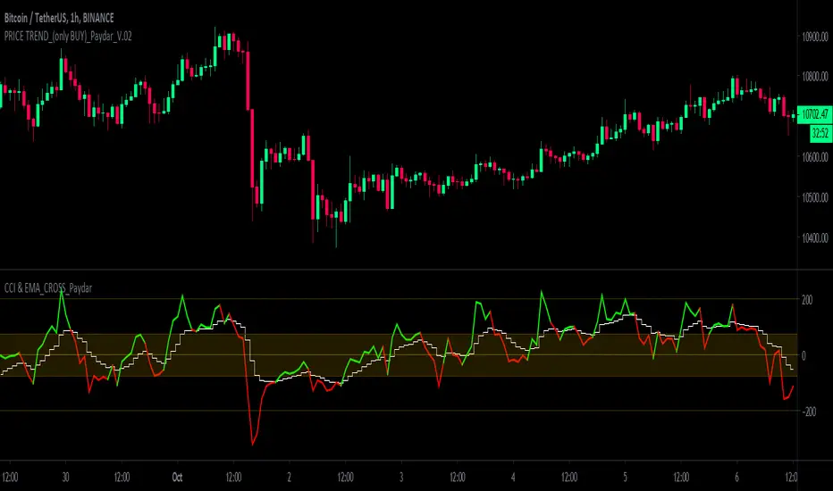 Sell = In the bullish range, if line CCI intersects line EMA down and goes to the neutral zone.