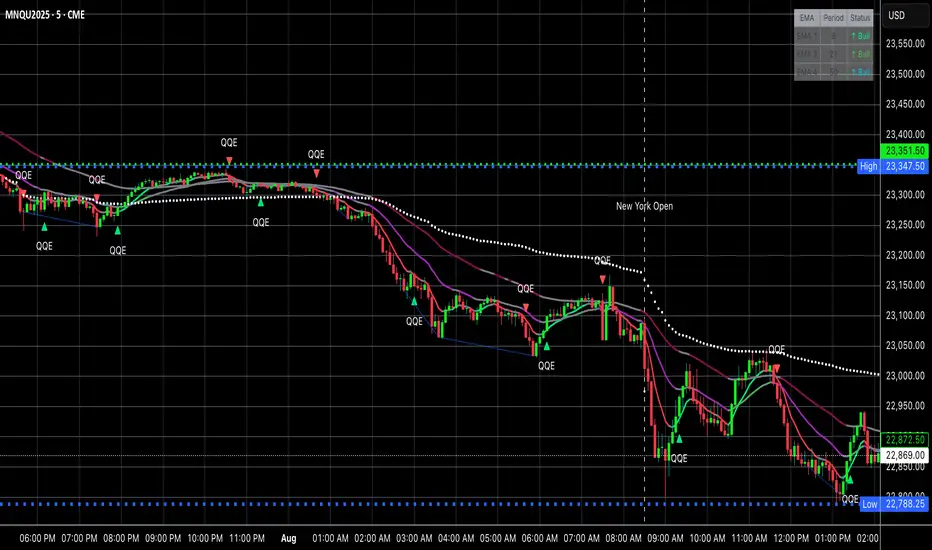 This is a package of up to 6 EMA's that change color with direction and include an neutral color for flat periods of consolidation. Easy and consise to use. One can set alerts for color/direction change and use in the creation of stratgies.