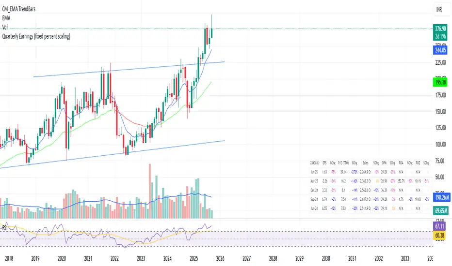 This script shows company fundamentals in a TradingView table: Earnings Per Share (EPS), Price-to-Earnings Ratio (P/E, TTM), Sales (in Crores), Operating Margin (OPM %), Return on Assets (ROA %), and Return on Equity (ROE %)Protected script