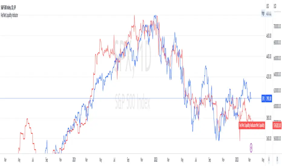 This is an overlay that can be added to stock or other charts (like SPY ) to see how the market may appear correlated to Net Liquidity - injection of liquidity into the markets.
