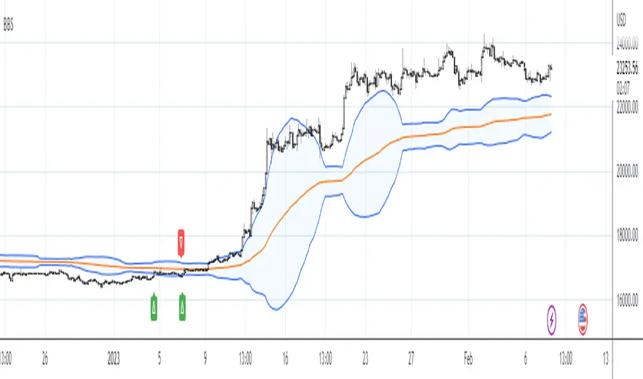 It uses a standard technical analysis indicator - Bollinger Bands - and appends it with a 'width' parameter and