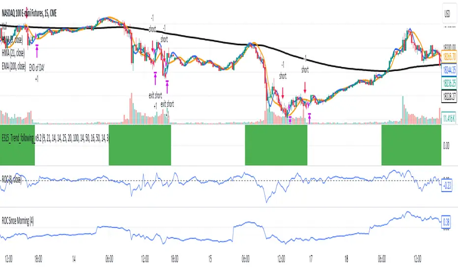 The "ROC Since Morning" indicator is designed for traders who wish to gauge the momentum of an asset from a specific time in the morning, allowing for a customizable analysis of pre-market and intraday movements. This indicator calculates the Rate of Change (ROC) from a user-defined hour, offering insights into how the price has moved since then.