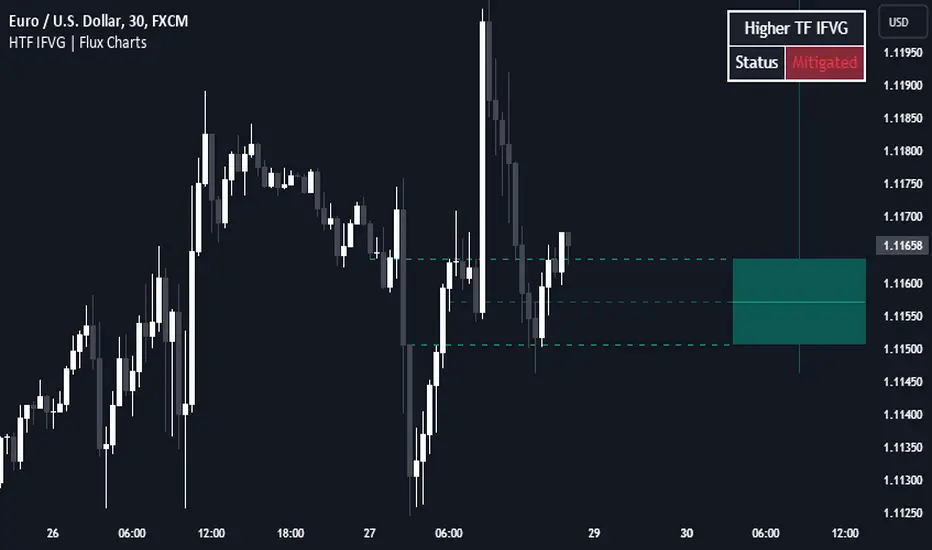 Higher Timeframe -> The higher timeframe to detect latest IFVG from. Keep in mind that his setting must be higher than the current timeframe.