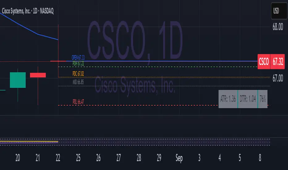 Intraday Key Levels plots objective, session-based reference lines to help you track structure during the trading day. It shows prior-day levels, current open, opening-range boundaries, and after-hours extremes, with compact labels that include each level’s name and price.