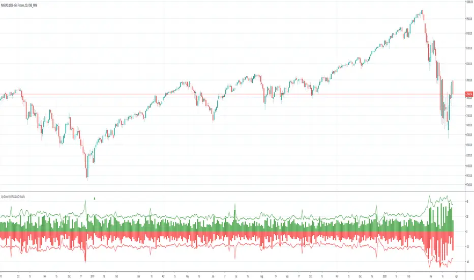This indicator shows the NASDAQ's up volume (green) and down volume (red).