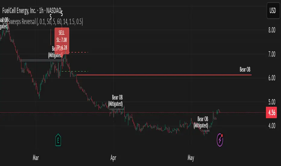 OB Sweeps Reversal is a high-precision market structure tool that identifies and dynamically tracks bullish and bearish order blocks — key zones where institutional participants are likely to be active. These zones act as support and resistance levels, adapting to market behavior in real time.