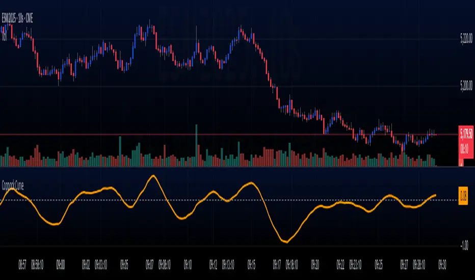 The Coppock Curve is a long-term momentum indicator, also known as the "Coppock Guide," used to identify potential long-term market turning points, particularly major downturns and upturns, by smoothing the sum of 14-month and 11-month rates of change with a 10-month weighted moving average.