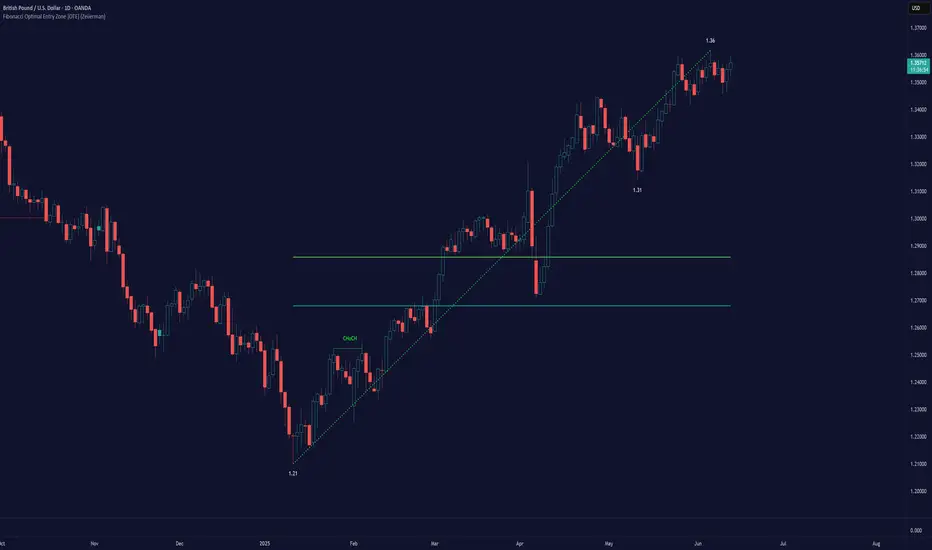 Fibonacci Optimal Entry Zone [OTE] (Zeiierman) is a high-precision market structure tool designed to help traders identify ideal entry zones during trending markets. Built on the principles of Smart Money Concepts (SMC) and Fibonacci retracements, this indicator highlights key areas where price is most likely to react — specifically within the "Golden Zone" (between the 50% and 61.8% retracement).