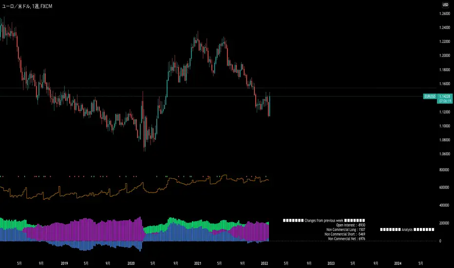 This is upgrade functions of CFTC Positions by COT Report(Legacy and New Format) Indicator which I previously released by adding more assets and new functions; (1)manual CFTC code entry, (2)display of changes from previous week and (3) Auto-identification of peak position level (see below)