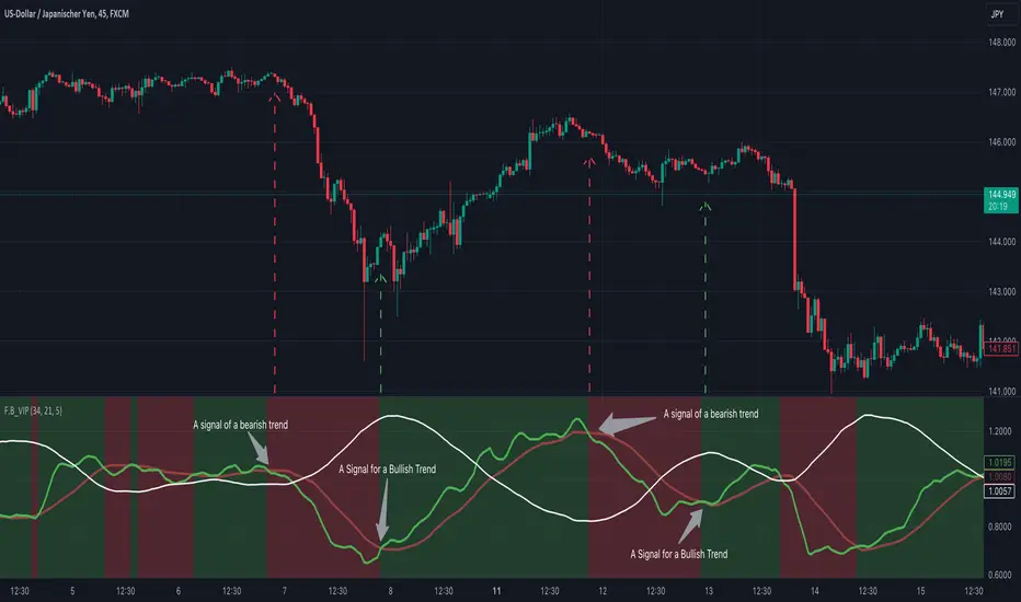 The "F.B_Vortex Indicator Pro" is a technical analysis tool designed to identify trends in financial markets. It calculates two Vortex Indicators (VI) based on price movements, considering positive and negative price changes.