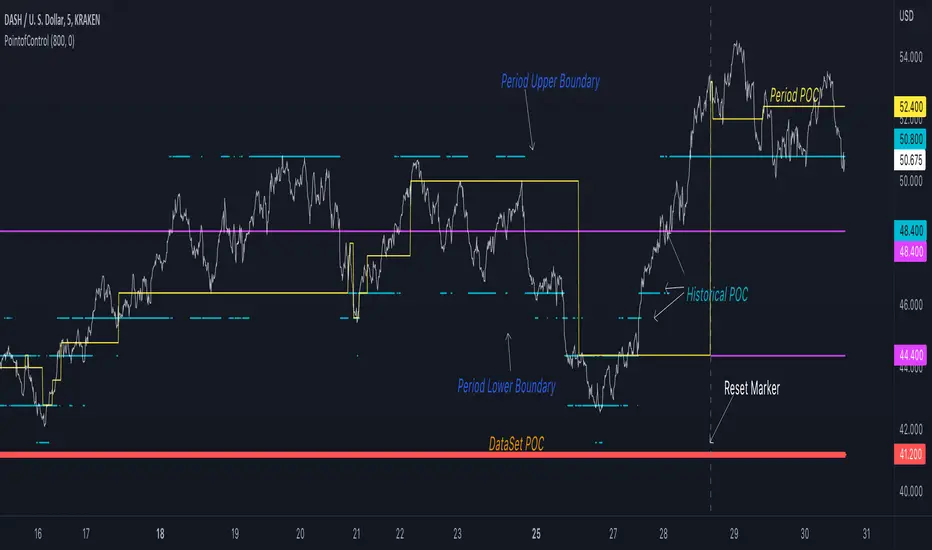 - another note on volume, Volume Profiles and POCs essentially examine the volume across price levels or increments, if a single candle crosses multiple price levels, this script allocates the volume of that candle equally between the volume levels and not purely at the ending close or high price level of the candle, this is purely a choice on my part that suggests large body single candles have trading volume through the entire price action of that candle and not at one price point. A more precise method (perhaps for a later update) would be to parse that one large candle into lower time frames and allocate the volume appropriately - perhaps for a future version. For now the approximation of equal volume distribution is good enough.