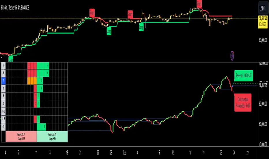 The script calculated Reversal level and Continuation probability of the trend by using Sequence frequency.