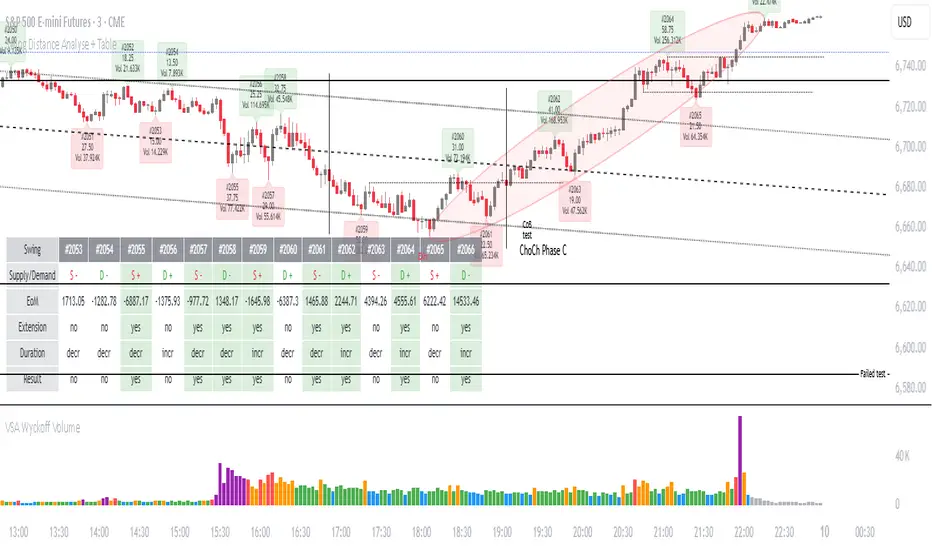 All swing data is displayed in a customizable table panel on your chart. Ideal for traders who want a clear, structured overview of recent swings, volume pressure, and market dynamics.